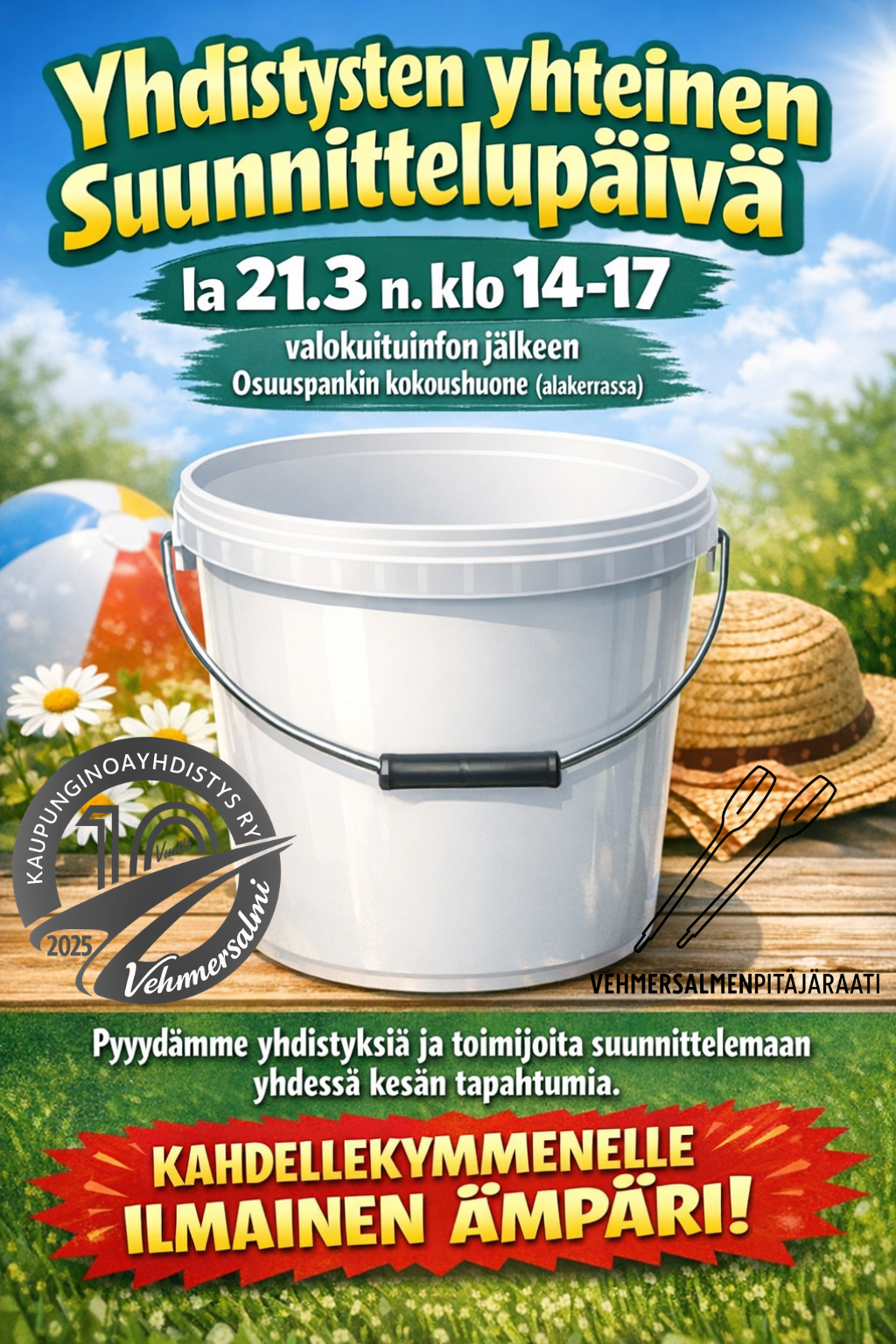 Tervetuloa Vehmersalmen yhdistysten edustajat ja kylän toimijat, suunnitellaan Vehmersalmen kesän tapahtumia yhteistyössä.